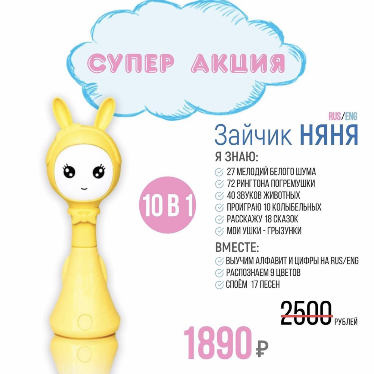 ШОК ЦЕНА😱 Зайчик Няня 10в1 всего за 1890₽ (вместо 2500₽)♨️Экономия 610₽☑ Дешевле не будет🙅🏻♂