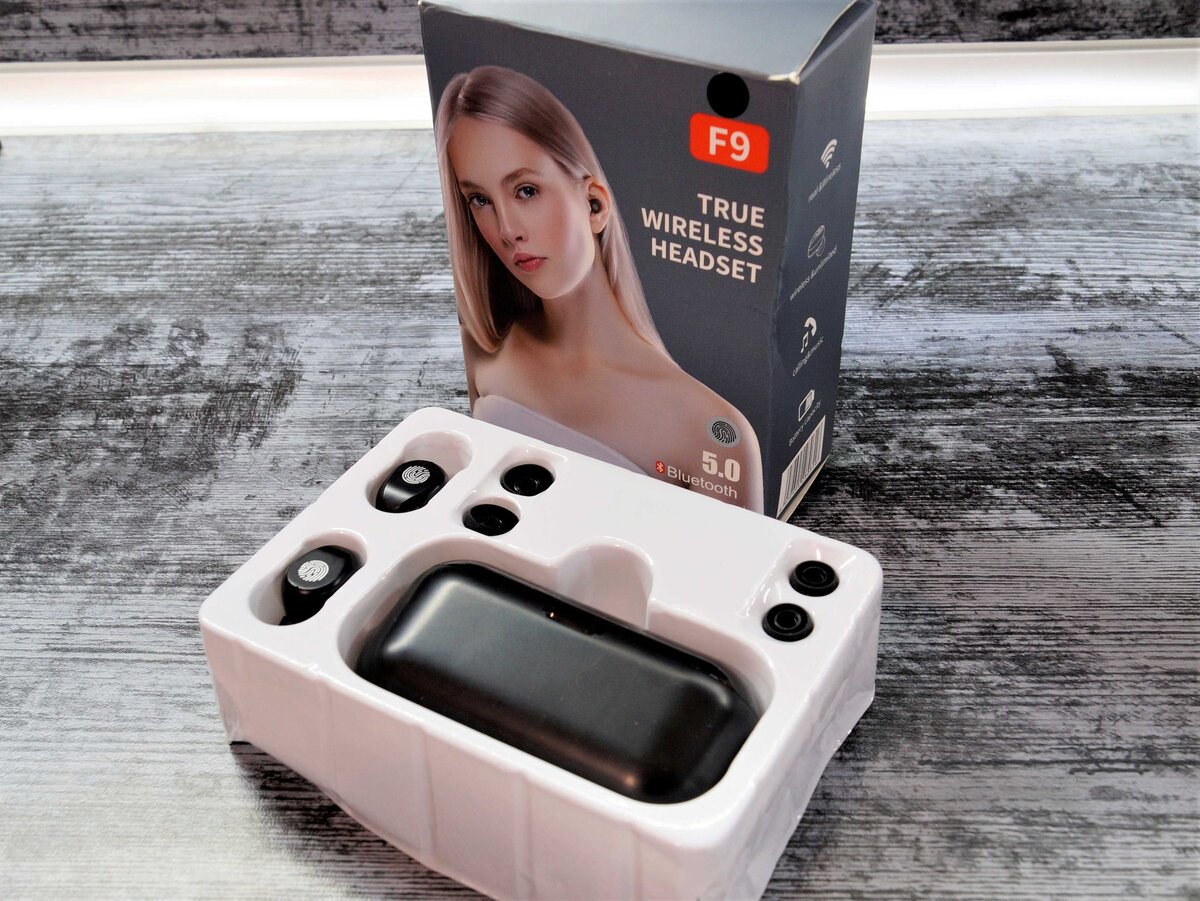 Не перестаёт меня радовать китайский производитель своими Bluetooth наушниками. Да ещё и со встроенным Power Bank и цифровым индикатором уровня зарядки. На этот раз у меня появились Bluetooth наушники, модель F9. Видео обзор Они практически ничем не отличаются от моделей из серии Q32(HBQ). Предыдущие модели, которые были у меня на обзоре, они не имели сенсорного управления и были немного закругленной формы. Эти наушники - сенсорные. Форма наушников немного, но чуть-чуть изменилась. Предлагаются наушники в презентабельной коробке! Правда сама упаковка из не плотного картона и поэтому может помяться при пересылке. Комплект поставки - всё, как обычно. Кабель, инструкция, амбушюры и бокс. Рассказывать, что вы уже и так все знаете про внешний вид - не думаю, что это необходимо. Ничего нового. Дисплей уровня зарядки самого бокса и бегущие светодиоды при зарядке наушников. Красиво! В ушах "сидят" удобно. Сопряжение с телефоном происходит ну просто мгновенно! И, на мой взгляд, а точнее на мой