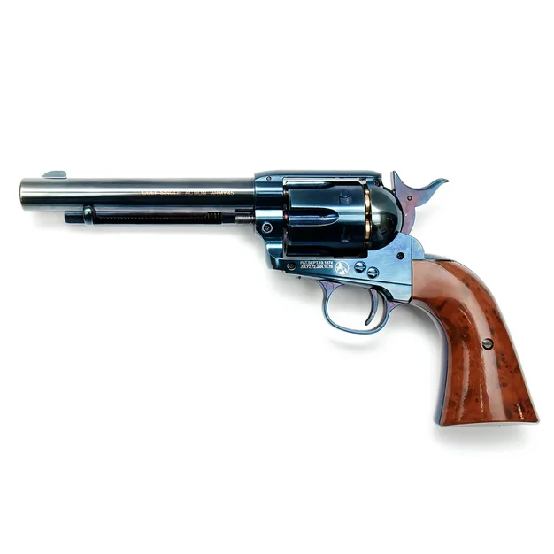 Здравствуйте, коллеги-страйкболисты. Револьвер – не самый частый гость на полигоне. Этому, разумеется, есть причины: перезарядка занимает достаточно много времени и вместимость барабана, как правило, небольшая. Сегодня обсудим, чем может быть интересен этот вид оружия. Антураж По этому пункту любой револьвер даст фору всем остальным видам оружия. Например, Umarex SAA 45 на CO2 моментально погружает в атмосферу фильмов с Клинтом Иствудом или же отправляется прямо в мир Дикого Запада. Его боевой прототип – кольт-миротворец - по сей день носит лавры легендарного оружия, им пользовались многие знаменитые личности. Ствол, барабан, рамка выполнены из алюминиевого сплава, рукоятка – из качественного пластика. По аналогии с боевым образцом, имеет ручной взвод. Прицельные приспособления тоже удачно копируют оригинал: это мушка и прорезь для прицеливания. Как только револьвер оказывается в руке, возникает соблазн сделать серию выстрелов навскидку. Если потренироваться взводить курок левой руко