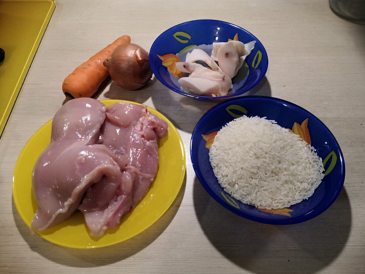 Привет друзья! Сегодня хочу рассказать про то, как приготовить плов из курицы со вкусом баранины. Сразу отвечу на вопрос: "А зачем?" Ну, я думаю, что для истинного гурмана настоящий плов - только из баранины. Всё остальное - это рис с мясом. Себя в этом вопросе я считаю гурманом. Тогда почему я использую курицу? Ответ простой: время приготовления! Если по классическому и правильному рецепту делать плов, из баранины, с зирваком и настаиванием готового блюда, то это три, а то и четыре часа потраченного времени. Да, оно того стоит, но что делать когда этого времени нет, а плова хочется? Предлагаю воспользоваться моим рецептом. За полчаса у вас будет настоящий плов. Ну, почти настоящий) Итак нам понадобятся: 1. Филе куриной грудки - 300 грамм 2. Бараний курдюк - 150 грамм 3. Рис - 300 грамм 4. Лук и морковь - средних размеров 5. Специи для плова, соль. Рис лучше использовать, который предназначен для плова. Потому что существую разные сорта,