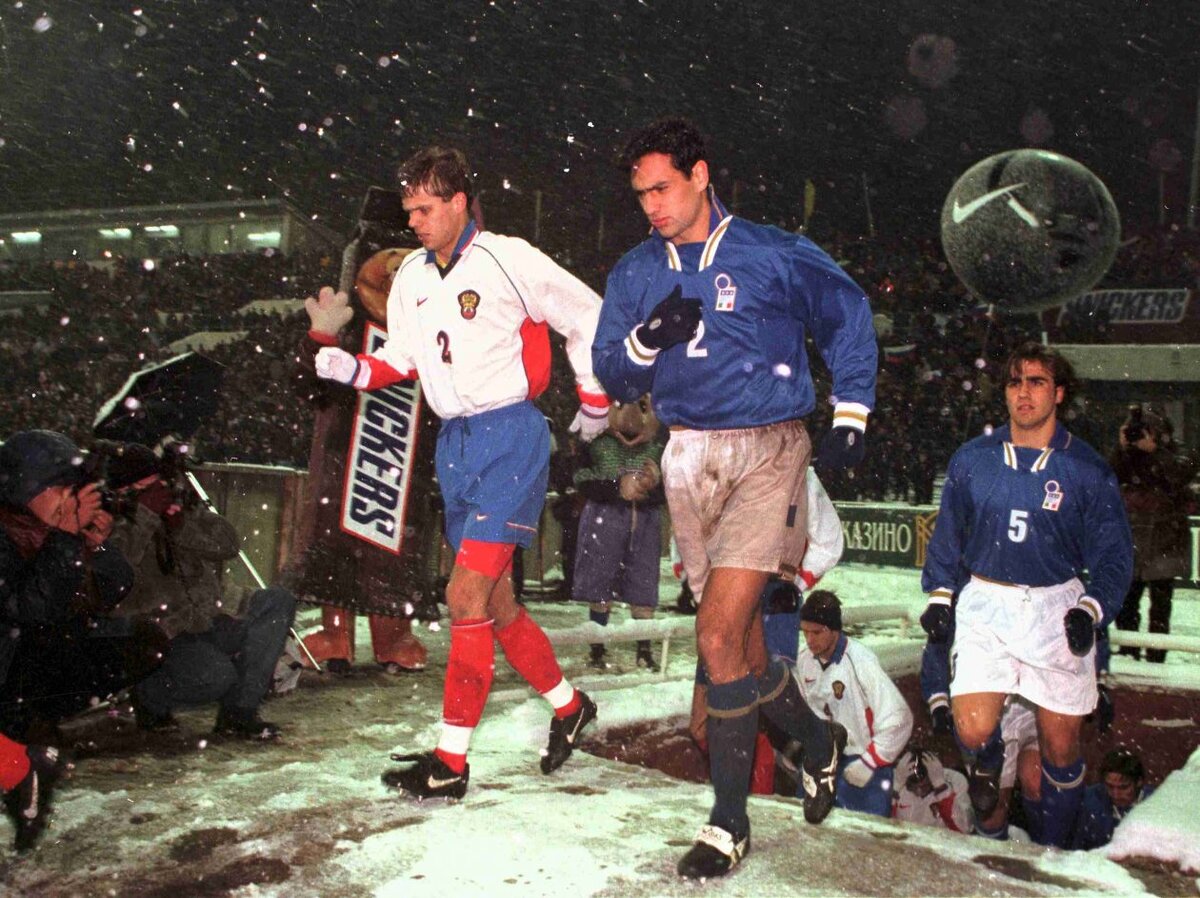 29 октября 1997 года в Москве на стадионе «Динамо» состоялся стыковой матч за право выступить на чемпионате мира , в котором сборная России встречалась со сборной Италии. Накануне игры в Москве зарядил мокрый снег, который не прекращался целый день, в результате чего игровая поляна мало стала походить на футбольное поле. Тем не менее капризы природы не отпугнули зрителей, собравшихся на стадионе поддержать подопечных Бориса Игнатьева, а футболисты в тяжелых условиях выдали весьма зрелищный матч. Встреча завершилась вничью со счетом 1:1: в начале второго тайма счет открыл Кристиан Вьери, но уже через две минуты Фабио Каннаваро срезал мяч в собственные ворота. Провалил игру лишь главный арбитр: даже итальянские СМИ признали, что датчанин Миккельсен дважды должен был поставить пенальти в ворота гостей. Эти неоднозначные решения повлияли на исход противостояния: 15 ноября в Неаполе сборная Италии одержала победу со счетом 1:0, и сборная России осталась без чемпионата мира. Помимо всего пр