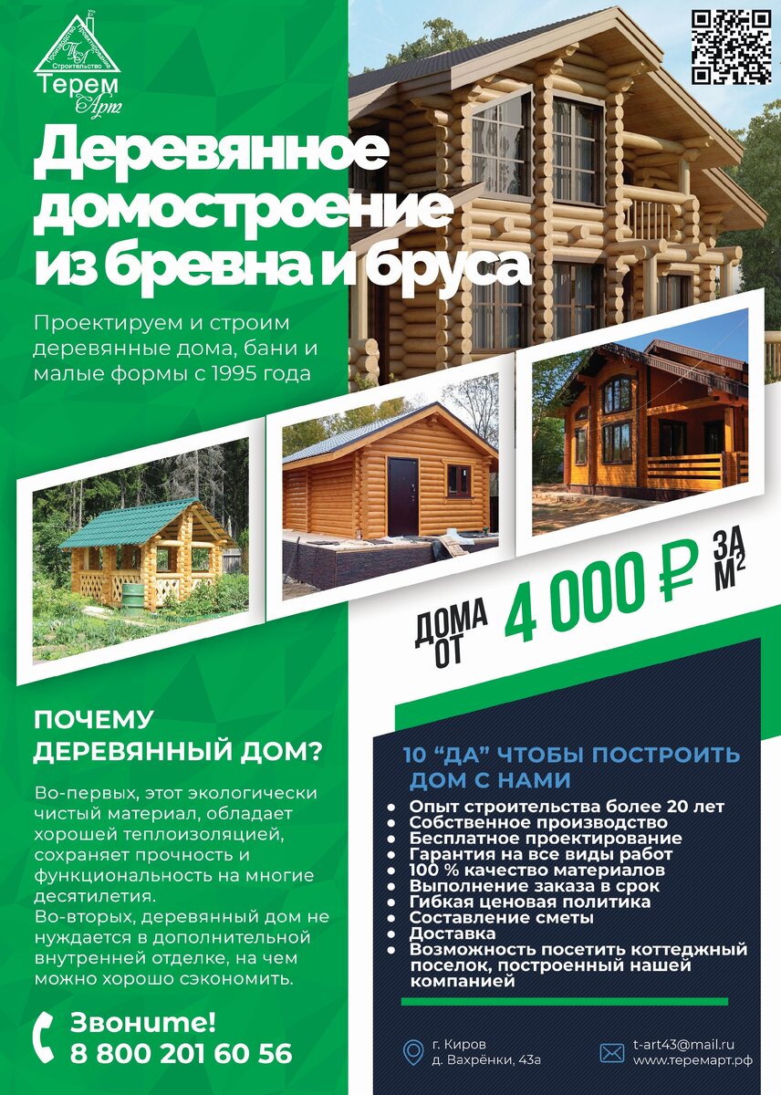 Компания ТеремАрт занимается строительством деревянных домов и бань из хвойных пород Кировского леса, так же имеется собственное производство пиломатериалов (обрезная доска, вагонка, имитация бруса, чистовые полы, блок-хаус), из отходов (опила) мы производим топливные гранулы (пеллеты). Одним из направлений деятельности нашей организации является производство оцилиндрованного бревна. На нашей производственной (4га) площадке размещен лесопильный цех, оснащенный двумя линиями оцилиндровочного оборудования роторного типа. Оцилиндрованное бревно имеет естественную влажность и при необходимости обрабатывается антисептирующим составом. В 2014г. был введен в эксплуатацию цех по производству гранул «пеллет», используемое оборудование фирмы ДозаГран город Нижний Новгород. Таким образом перерабатываются отходы собственного производства, которые потом поставляются в города РФ, а также в страны СНГ. Имеется своя ремонтная база, с токарным и сварочным цехом. На территории предприятия находятся су