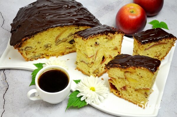 Шарлотка с грецкими орехами и шоколадной глазурью!