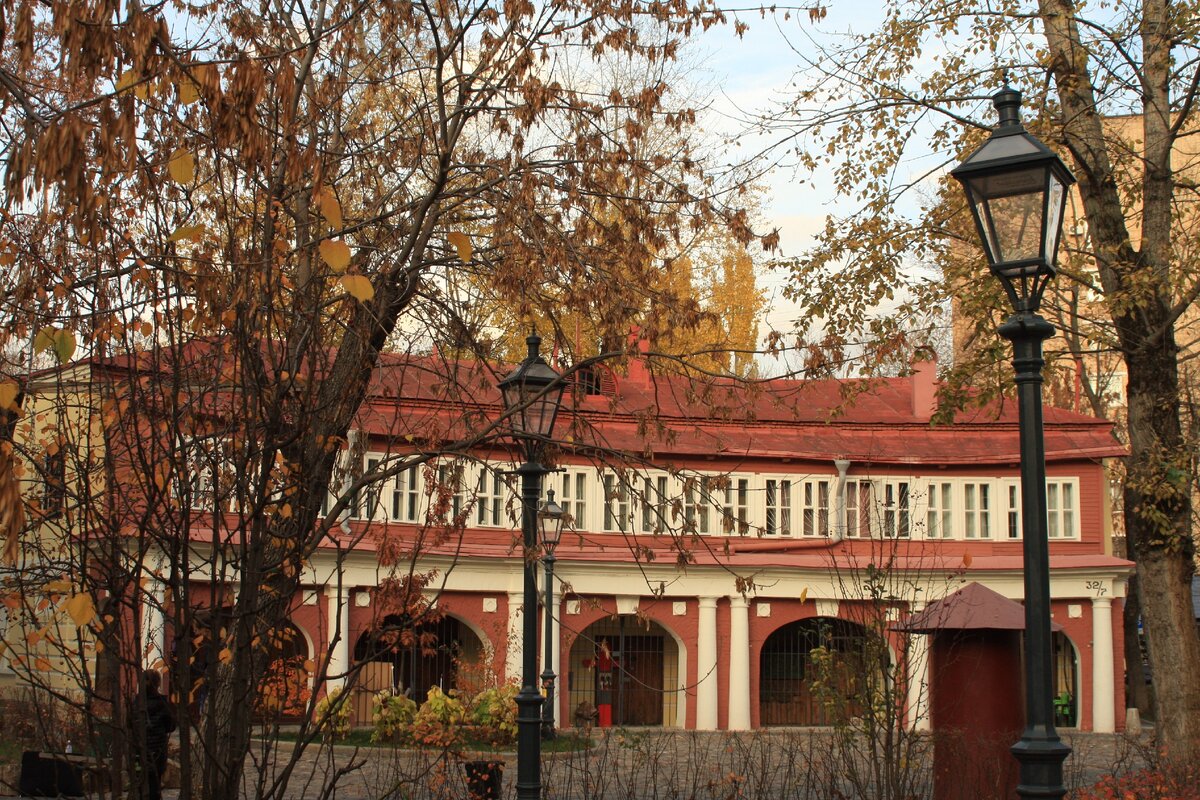 Взялось оно из XIX века и прячется за роскошным фасадом бывшей ампирной усадьбы, построенной гвардии корнетом Петром Яковлевичем Охотниковым на месте дома, сгоревшего в пожаре 1812 года. Как это часто происходило, дворянство беднело, а его роскошные дома занимали "нувориши", например, купцы Пеговы, которые здесь практически не жили. А чтобы имущество не стояло без дела, его сдавали в аренду. Так здесь появилась знаменитая гимназия Поливанова. Из её стен вышли многие знаковые фигуры конца XIX/начала XX веков - философ В.С. Соловьев, поэты Андрей Белый и Максимилиан Волошин, шахматист Александр Алёхин и другие. Как ни странно, здание до сих пор является школьным, но об этом - чуть ниже.