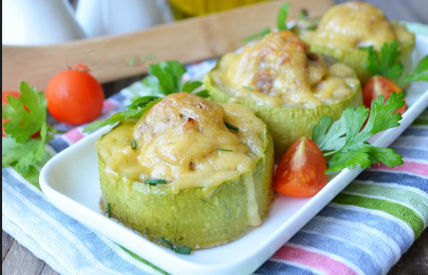 Кабачки, фаршированные индейкой.