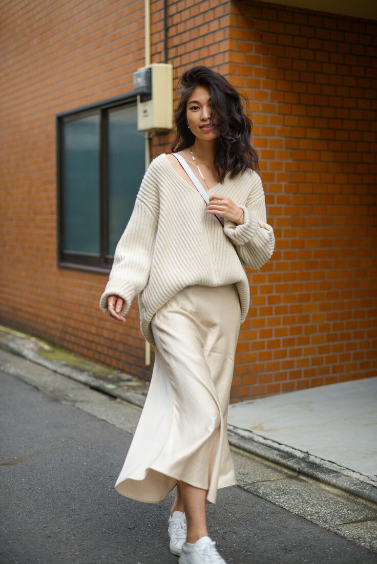 Я люблю современную моду за то, что сейчас за актуальность образа отвечают не какие-то конкретные вещи, а способ стилизации. Значит, можно не докупать очередной "маст-хэв", а залезть в свой собственный шкаф и немного поэкспериментировать с сочетаниями. Предлагаю 4 примера красивых сочетаний, которые добавят образу "перца". Все комплекты основаны на контрасте (в общем-то это и есть современная стилизация чего угодно). Поехали! 1. Контраст тканей Гладкая ткань и фактурная. Тонкая и плотная. Матовая и блестящая. Именно на этом контрасте строится сочетание, заполонившее улицы во время недель моды: грубый свитер и атласная юбка: Кстати, это прекрасный способ одеваться с ног до головы в один цвет. Разница фактур делает образ не пресным (особенно это хорошо работает для черного цвета): 2. Контраст объемов Это тот прием, который позволяет носить обтягивающую одежду и не быть призраком из гламурных 2000-х. Если юбка узкая, то блуза свободная, если топ в обтяжку, то свободный низ и т.д. 3. Контр
