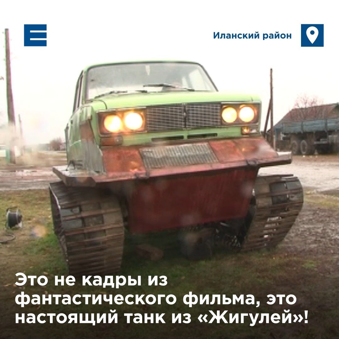 Машину жалеть не привыкли. Наоборот, то и дело подвергают новым испытаниям. На днях Жига-танк вернулся с рыбалки, там на нём попробовали перелететь через метровые пни. В результате погнулись несколько металлических пластин. Супер-машину сделали уроженцы Иланского (Красноярский край).Ну вот сейчас на новые надо поменять. Траки эти менять надо. 12 штук я насчитал надо менять. Владелец этого вездехода Игорь Громов, рассказывает гусеницу конструировали сами — из транспортерной ленты и железа. Его гнули вручную. Да и вообще все здесь сделано руками четырех человек — в Новопокровке их называют местными Кулибиными. Подумать только, из груды металлолома собрать такое. С металла, с разборок, с металлолома, то есть практически ничего не покупали. Двигатель перебрали, сделали.