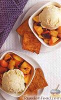 Персики, сливы и ананас жарятся на гриле и подаются с ванильным мороженым. Продукты (на 6 порций) Приготовление: 1. Включить гриль для предварительного разогрева до средне-высокой температуры. Решетку смазать растительным маслом. 2. Фрукты также слегка смазать растительным маслом со всех сторон. Выложить фрукты на решетку, жарить около 3 минут с каждой стороны. 3. Переложить фрукты на тарелку. С персиков снять шкурку, а мякоть порубить кубиками. Все остальные фрукты также порубить кубиками. 4. В каждую из 6 порционных тарелок выложить примерно по 1/2 стакана фруктов, а сверху по большому шарику мороженого (примерно по 1/4 стакана). 5. Подавать десерт с сладкими чипсами (по желанию).