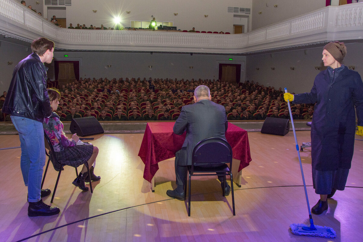 Премьерный показ посетили военнослужащие дивизии и члены их семей, а также ветераны соединения. В зале зрителей встречал легкий блюз-рок, создававший атмосферу 70-х годов – именно в этот период разворачивается действие спектакля.