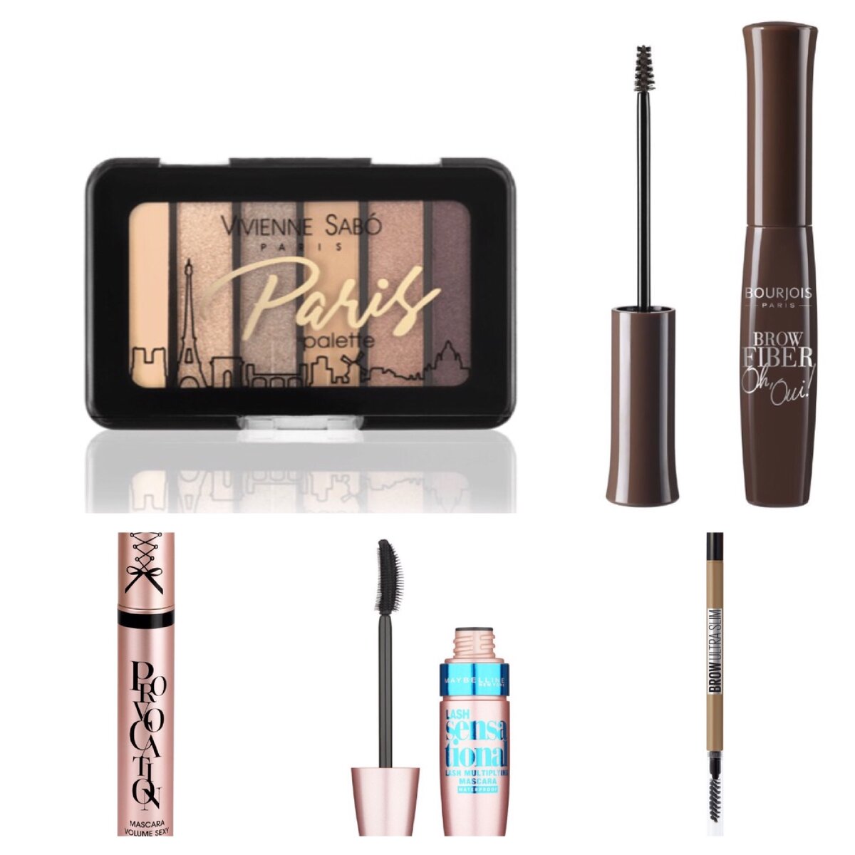 1.Maybelline New York. Lash Sensational Веерный объем, водостойкая, оттенок черный, 9,5 мл 2.Bourjois Тушь для бровей Brow Fiber Oh, Oui! 3.Maybelline New York Карандаш для бровей "Brow Ultra Slim", карандаш + щеточка 4.Vivienne Sabo Палетка теней для век Paris, 03 Grand Opera 5.Vivienne Sabo Тушь для ресниц Provocation тон 01 (черный) До встречи, красавица💋💋💋 Твой WORLD OF BEAUTY13💄