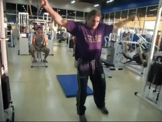 Посмотрите на этого мужчину, что за упражнение он выполняет? Это похоже, на какой-то кросс, только выполняется он на тренажере. Как вы думаете, какие группы мышц он тренирует? Нужно быть предельно внимательным, ведь тренажёры подвижны и можно запросто накачать не те мышцы. А куда смотрел этот мужчина? Понятно, что этот кадр из фильма, но он показывает, как на самом деле начинают тренироваться новички. Ведь они еще ничего не знают, а нанять тренера стоит очень дорого. Вот они и занимаются тем, что ничем не занимаются. Вот этот кадр вызвал у меня долгий смех. Что за упражнение выполняет мужчина? И зачем он после трески рук ставит ногу? Если смотреть на эту гифку примерно минуту, то она вызывает невероятный смех. Вот это скорость. Это же человек молния или электроник. Пожилой мужчина просто не верит своим глазам. Я тоже не могу поверить, что можно развить такую скорость. А вы верите? Вот так обычно проходят тренировки в спортзале у новичков, которые не знают, чем им заняться. И они перекл