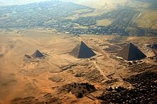 Еги́петские пирами́ды — древние каменные сооружения пирамидальной формы, расположенные в Египте. Количество объектов, идентифицируемых как египетские пирамиды,варьируется от 118 до 138 (по данным ноября 2008 года.Большая часть пирамид была построена в качестве усыпальниц для фараонов Древнего и Среднего царств.Древнейшие из известных пирамид находятся в Саккаре. Самой древней считается пирамида Джосера, построенная архитектором Имхотепом в период с 2667 по 2648 гг. до н. э. Самые известные пирамиды находятся на окраине Каира в Гизе, три из которых до сих пор являются одними из крупнейших сооружений, когда-либо построенных человеком.Пирамида Хеопса является самой большой пирамидой в Египте и входит в число Семи чудес света. период первых династий появляются специальные «дома после жизни» — мастабы — погребальные здания, состоявшие из подземной погребальной камеры и каменного сооружения над поверхностью земли. Сам термин относится уже к арабскому времени и связан с тем, что форма эт