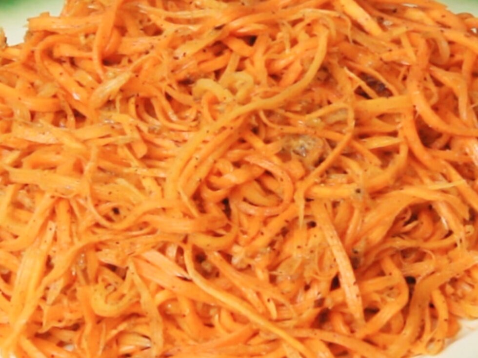 Данный рецепт появился путем проб и ошибок, он очень простой, морковь получается ни чуть не хуже магазинской по вкусу и считаю что намного полезнее. Ингредиенты: Морковь – 5 шт Лук - 1 шт Растительное масло Кориандр – по вкусу Пакет сухой приправы для острой моркови Способ приготовления: Очистите и помойте морковь. Потрите ее на специальной терке. Возьмете кориандр и самостоятельно измельчите его, добавьте его в натёртую вами ранее морковь. Очистите лук, разрежьте луковицу на четыре части и обжарьте ее на растительном масле. Подождите пока масло остынет и вылейте масло в морковь. Лук нам больше не пригодится, его в морковь добавлять не надо. Далее высыпите в морковь приправу и перемешайте. Поставьте салат в холодильник на 30-40 минут. Небольшой лайфхак: В данный рецепт кориандр лучше молоть самостоятельно, так как он будет намного ароматнее, нежели купить его молотым. ВСЕМ ПРИЯТНОГО АППЕТИТА!!!