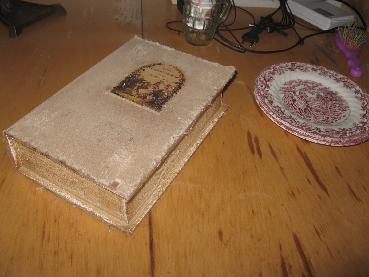 В этот раз на столе у этой пары я заметила какой-то толстый потрёпанный том в матерчатой обложке. Взяла в руки- это оказалась шкатулка современной работы, выполненная в технике декупаж.