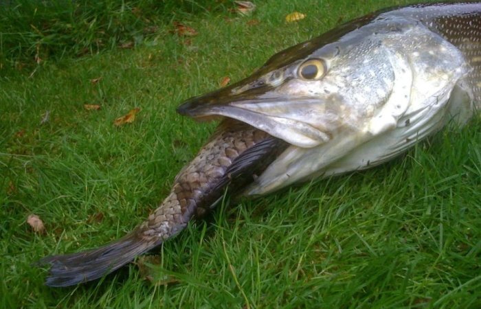 Раздел: Отчеты и заметки о рыбалке Ни для кого не секрет, что щука обладает зверским аппетитом. При этом в еде она не избирательна, хватает все, что проплывает рядом. Щука является Ганнибалом, очень часто в ее рационе оказываются мелкие щучки. Казалось бы, нужно бить тревогу, ведь щука сама истребляет себе подобных, часть икры остается на берегу с падением уровня воды, еще одну часть съедают водоплавающие птицы и т.д. Однако, щука является одной из самых плодовитых хищников наших водоемов. И если бы вся икра превращалась в щуку, то за короткое время она бы истребила всех обитателей водоема(рыб), которые водятся поблизости. Прожорливость щуки Наверное, многие усомнятся в вышеизложенном, однако, тому есть доказательство. Один ученый из Великобритании решил опытным путем проверить прожорливость зубастой хищницы. В экспериментальный пруд было выпущено около одной тысячи пескарей, затем к ним было выпущено восемь щучек, одинаковых по весу. Вес одной особи составлял 2.5 килограмма. Всего з