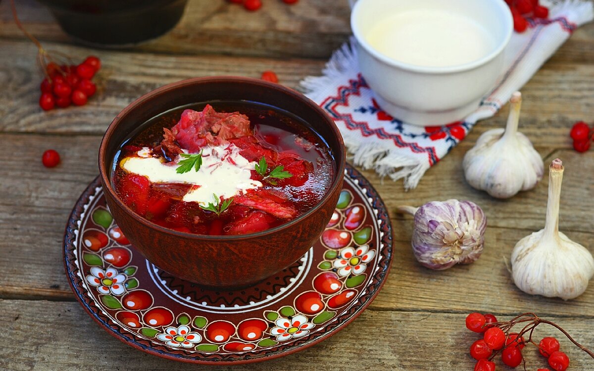 (Пропорция на 6 человек). Взять три стакана свекольного кваса, один стакан суровца (смотри ингредиенты для старо-русского борща) разбавить водой, чтобы было примерно на 10-11 тарелок, посолить. Положить 2 фунта (900 гр.) мяса. Поставить варить очищенную вымытую курицу. Когда закипит, снять накипь. Варить, пока курица не будет готова. После вынуть мясо из кастрюли. Положить в варившийся квас три штуки большой шинкованной свеклы и одну цельную штуку для вкуса, добавить мелко нарезанных кореньев: моркови, сельдерея, петрушки. Когда свекла хорошо сварится, положить I фунт (450 гр.) баранины. За час до обеда положить капусту (выбирать маленькие кочаны), порезанную в длину на 6—8 частей, мелко нарезанного картофеля. Взять 120 гр. свиного сала, нарезать мелкими кусочками, положить в чашу, добавить две столовых ложки муки, добавить в сало мелко резанного лука зеленого, петрушки, укропа, перемешать все вместе, пока сало не будет совершенно зеленым и будет одна гладкая масса. Опустить в борщ,