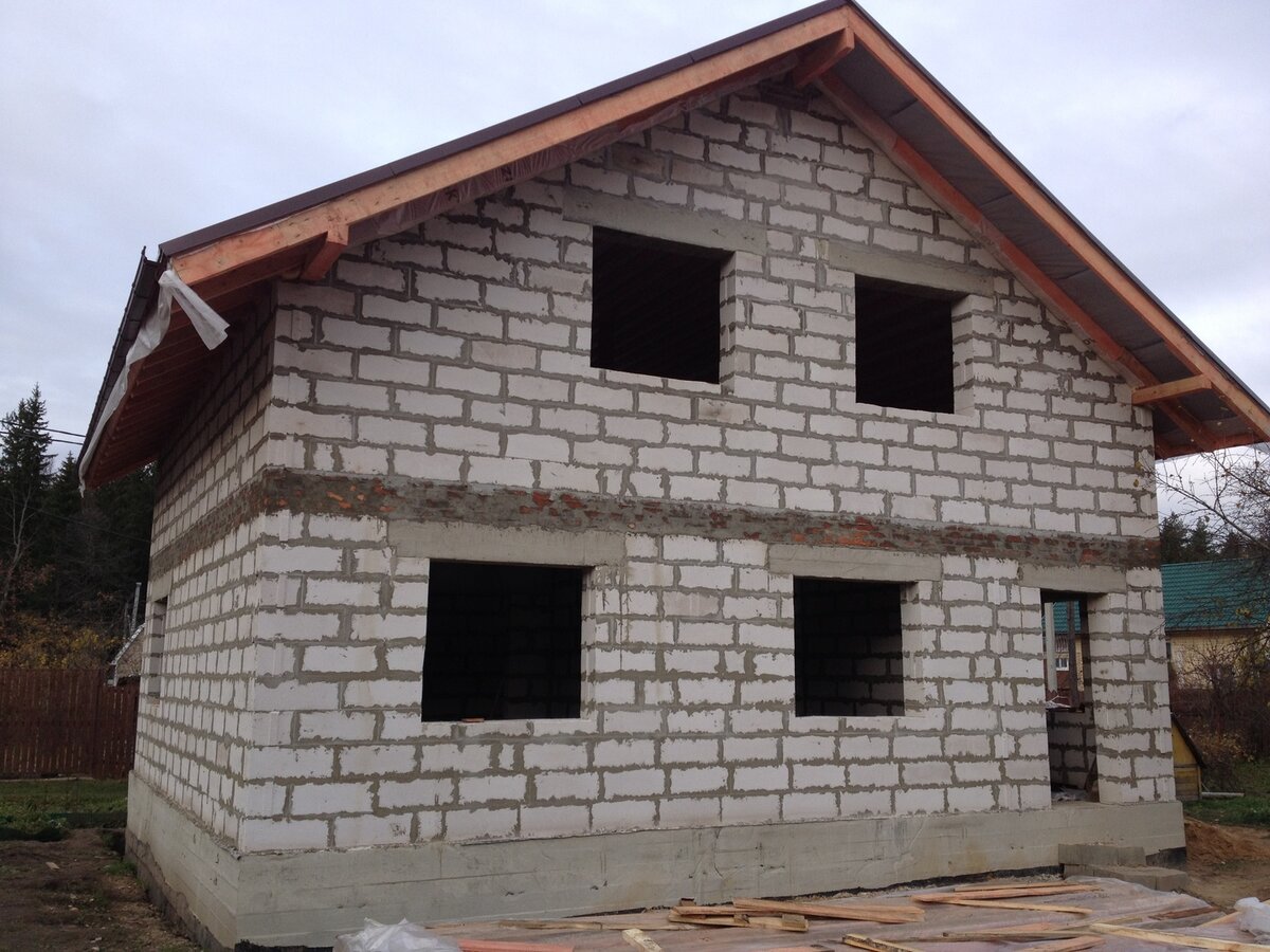 Благополучно завезли товар нам по адресу, залили фундамент под коробку и дали конечно же ему настояться пару месяцев, а затем начали потихоньку делать коробку.