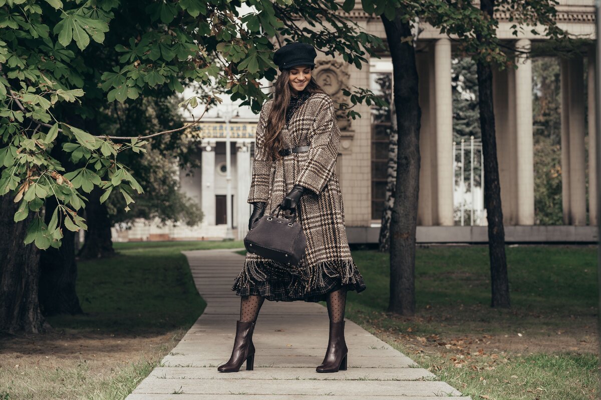 Создать уютный casual-образ с шерстяным пальто помогут стильные казаки AllaPugachova и сумка с леопардовым принтом!