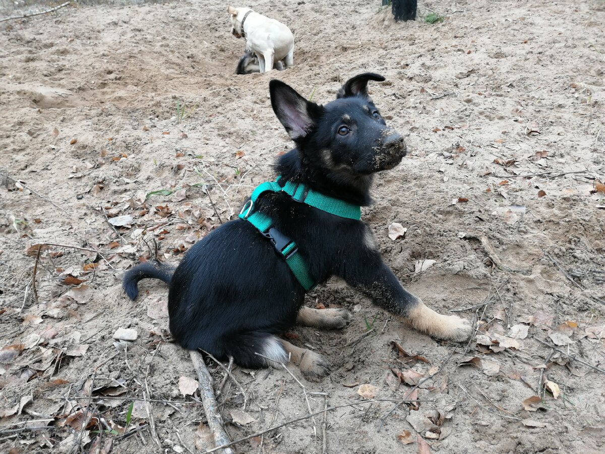Решились мы таки взять нашу малявку в лес прогуляться - что бы нагулялась ,устала и Герду дома поменьше донимала. Да и по 2 раза гулять трудновато - сначала с Гердой ( с ней всегда только в лес ходим,во дворе не вариант гулять),а потом ещё и малявку выгуливать. А она у нас умница такая - дома почти перестала в туалет ходить,до прогулки терпит.Не всегда правда получается - воды пьёт много конечно, да и покушать любим тоже))) Заодно и с Люксиком порзнакомились. Он правда играет как бегемот неуклюжий- то наступит сильно ,то попой придавит. Герда то тренированная и вёрткая, да и по весу ближе к нашему лабрадору, а щеночек то наш ещё совсем маленький,но настырный - всё равно к большим собакам лезет. Гуляли долго, больше часа.Ребёнок умаялся ,пока бегал за большими собаками.Был три раза перевёрнут (опрокинут ) большими собаками, несколько раз придавлен Люксиком - ну не умеет он аккуратно играть,как бы мы его не ругали и не одёргивали.Один раз даже заплакала из за лапки (Герда нечаянно нас