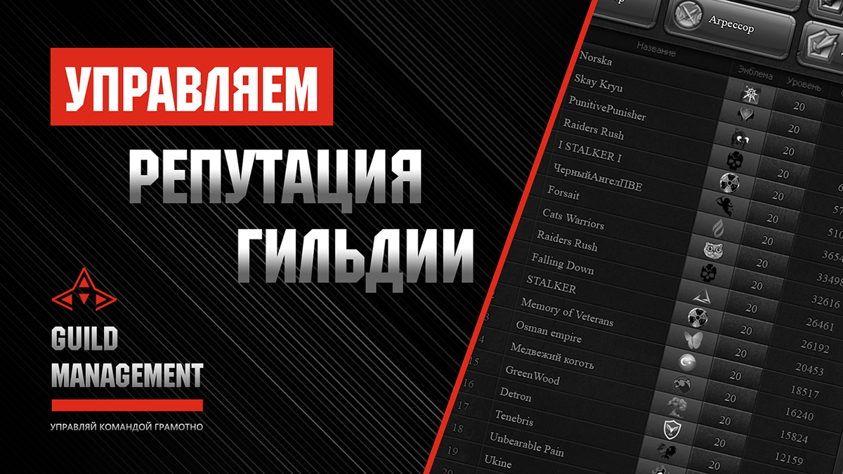 Гайд по управлению репутацией гильдий для любой ММОRPG. О том, как создать и управлять репутацией гильдий в онлайн проектах. Как изменять восприятие игроков и создавать необходимый образ. Гайд подходит практически ко всем MMO RPG играм, так как нет ни одной ммо без гильдий или кланов.
