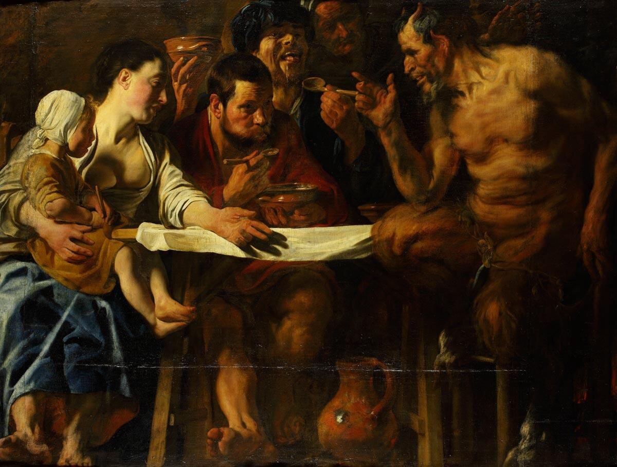 Картины и рисунки Якоба Йорданса из собраний России. На выставке показаны практически все его произведения, которые находятся в собраниях российских музеев: ГМИИ им. Пушкина, Эрмитажа и др. Их на самом деле не так уж и много: в экспозиции 18 картин и 31 рисунок, всего два небольших зала. Якоб (Жак) Йорданс (1593 – 1678) – один из самых значительных живописцев фламандской школы наряду с Рубенсом и Ван Дейком. Он работал практически во всех жанрах: создавал картины на религиозные, мифологические, исторические сюжеты, писал портреты и натюрморты, но оказывал предпочтение бытовым композициям с элементами бурлеска. Российские музеи обладают интересной, хотя и численно небольшой, коллекцией живописи Йорданса, позволяющей показать лучшие образцы его искусства почти во всех жанрах. Хронологически эти произведения относятся к периоду с момента получения им звания свободного мастера Святого Луки в Антверпене до середины 1660-х годов. Важной частью выставки стали четыре картины, - предо