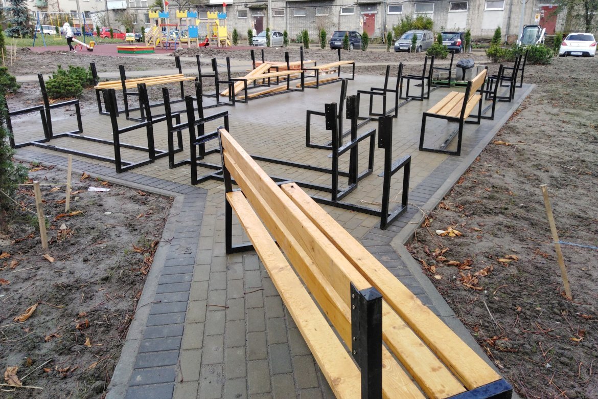 В курортной столице Русской Прибалтики очередное новшество. Здесь, на одной из дворовых территорий, где вот уже который месяц подрядчик пытается завершить работы по контракту в рамках создания так называемой комфортной городской среды, приступили к массовому производству уличных скамеек. Об этом сообщает корреспондент ЗЕЛЕНОГРАДСК/online, побывавший на месте сборки сегодня, 30 октября. Речь идет о придомовой территории многоквартирных домов на улице Сибирякова с номерами 9 и 17 и домом 16 на улице Бровцева. Это был самый "лакомый кусочек" программы создания комфортной городской среды в 2019 году. Местные власти оценили сметную стоимость работ более чем в 17 млн ₽. В результате электронного аукциона его победителем стала компания из Калининграда, руководители которой пообещали всё сделать за 11 с небольшим миллионов, в срок до 31 июля нынешнего года. Но потом что-то пошло не так. Работники подрядной организации то сбегали со стройки, то снова на ней появлялись. В итоге, даже глава адми