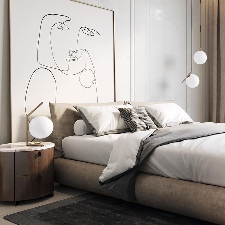 Что нужно учитывать и на что ориентироваться при выборе картины Картина дополняет интерьер. При выборе мы опираемся на акценты и стилистические особенности интерьера. Можно выделить ведущий оттенок цветовой гаммы спальни и подчеркнуть его с помощью картины: Другой способ — это выбрать контрастную картину. Она будет ярким акцентом в спальне, поэтому лучше, чтобы цвета интерьера были приглушенными: Выбирать картину не только, чтобы заполнить пустое пространство. Это правило относится к любому интерьеру, но особенно актуально для спальни. где мы остаемся наедине с собой. Образ на картине должен отражать внутренний мир. Можно повесить картину, привезенную из значимого места или путешествия. Она будет напоминать о счастливых моментах: Или повесить картину с аффирмацией, которая передает важные для вас смыслы: Картина должна задавать определенный настрой. В спальне лучше избегать слишком драматичных или темных образов. Выбирайте картины, которые вызывают у вас чувство умиротворения: Вых
