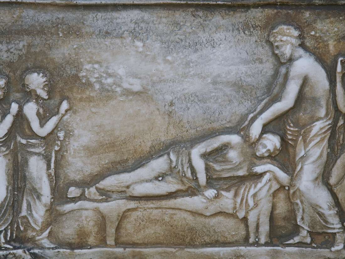 Расстройство желудка лечат окороками, сваренными в воде с семенами льна; старым овечьим сыром; овечьим салом, сваренным в крепком вине; ...или растирают двух улиток и яйцо вместе с скорлупой, кипятят в новом горшке с солью и двумя бокалами вина из сушеного винограда или с виноградным соком и тремя бокалами воды, и потом дают это пить...