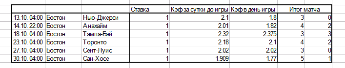Российские букмекерские конторы обычно дают линию на НХЛ сразу на два дня вперёд. В последнее время даже иногда на три дня вперёд. В каждой конторе конечно по разному. Так вот, если вы хотите ставить на фаворитов, то ставку лучше делать как можно раньше. Дело в том, что все любят ставить на фаворитов, правда большинство игроков почему-то предпочитают анализировать матчи не заранее, а непосредственно в день игры. В итоге все всё равно ставят на фаворитов и коэффициент просаживается. Вот вам эта тенденция на примере Бостона: На игру с Тампой кэфы не просели, потому что это примерно равные соперники и у игроков разные мнения об исходе игры. Но если соперник слабый, то кэф однозначно просядет на 1-2 десятых, а что такое 2 десятых в ставках надеюсь вы понимаете. Особенно на дистанции. просто возьмите калькулятор и посчитайте. Если вы сделаете в месяц 100 ставок с кэфом 2 и из них зайдёт половина, то есть 50, то вы останетесь при своих. Если кэф будет 1.9, то потеряете 5% с оборота, если 1.