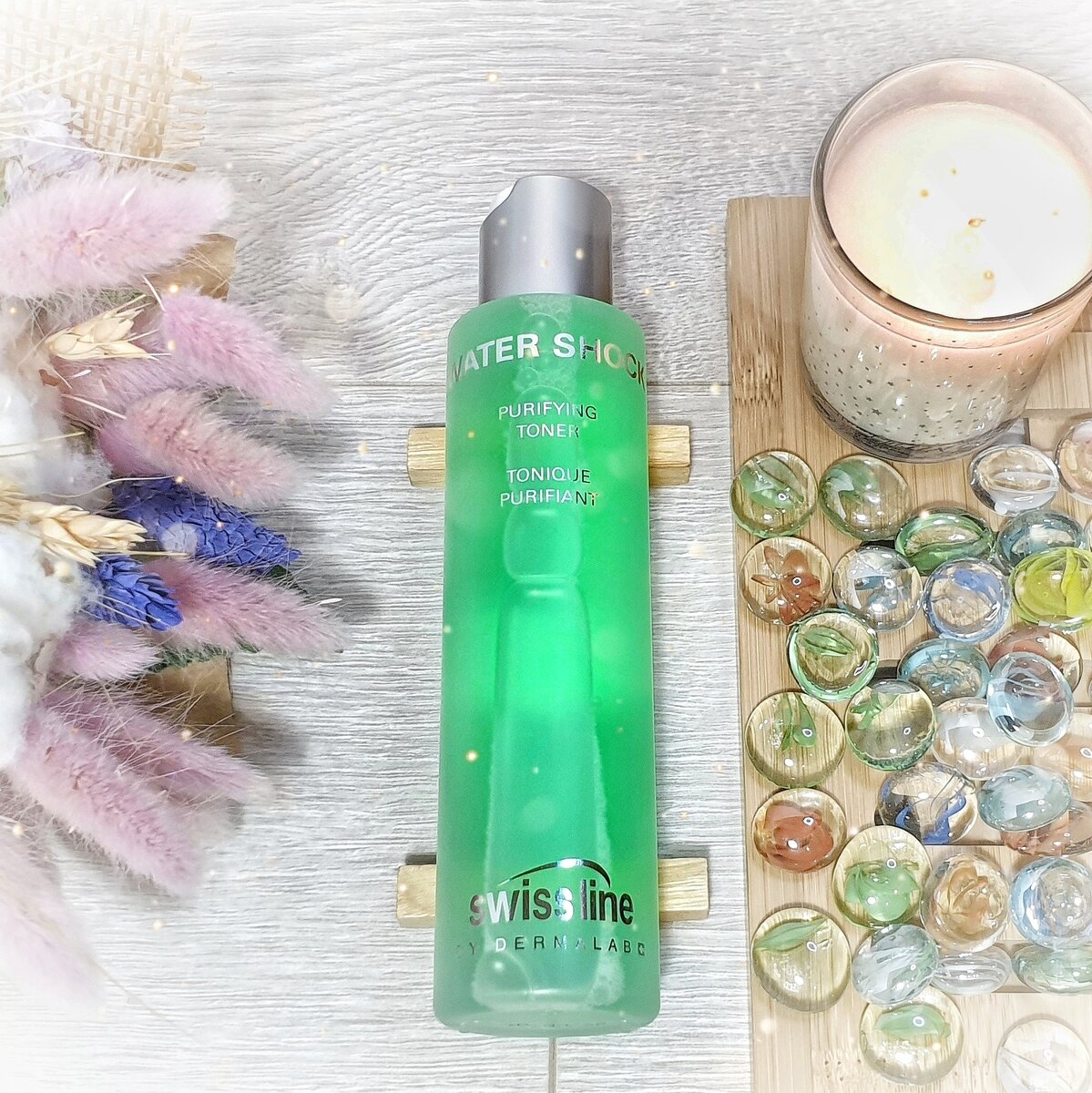 Swiss Line Water Shock Purifying Toner Тоник от швейцарской марки Swiss Line которой влюбляет в себя с первого же применения! Почему? Расскажу подробнее 😋 Вообще заявлено, что этот тоник оказывает матирующее, адсорбирующее избыток кожного сала и оказывает противовоспалительное действие, при этом в составе не содержится спирт, поэтому тоник не только не сушит кожу, а даже ее увлажняет. В составе есть экстракт белой крапивы, который нормализует микрофлору, и экстракт кресса, способствующий осветлению и тонизированию кожи ☺ Сам тоник по консистенции как обычная вода, но с приятным ароматом свежести. Очищает кожу просто на ура! Отлично тонизирует, увлажняет и успокаивает кожу, при этом является отличной базой для последующего нанесения уходового средства 🌺 Тоник отлично подходит для комбинированной и жирной кожи, у меня кожа комбинированная, поэтому это как раз то, что мне нужно 💕