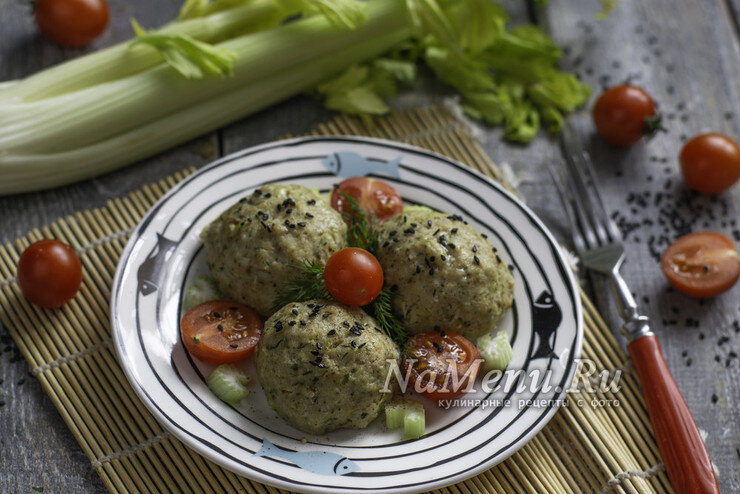 Ингредиенты: ✔️филе судака (без кожи) – 500 гр.; ✔️лук репчатый – 70 гр.; ✔️стебель сельдерея – 80 гр.; ✔️яйцо куриное – 1 шт.; ✔️молоко – 65 мл.; ✔️укроп – 30 гр.; ✔️отруби овсяные – 30 гр.; ✔️перец, соль; ✔️черный кунжут и помидоры черри для подачи. 🔪Очищенный лук нарезаем толстыми кольцами, кладём в чашу блендера 🌱Добавляем нарезанные стебли сельдерея 🐟Филе судака размораживаем, нарезаем крупно добавляем в чашу 🥚Разбиваем яйцо, наливаем молоко 🧂Насыпаем соль, овсяные отруби. Добавляем свежий укроп. Измельчаем продукты в фарш. Вымешиваем фарш в миске несколько минут ✋🏼Смазываем решётку пароварки растительным маслом. Влажными руками лепим круглые шарики ❗️Кладём на решётку котлеты, оставляем между ними пустое пространство 🔥Ставим кастрюлю на плиту, закрываем крышкой, готовим 10-12 минут https://namenu.ru/11268/Kotlety_iz_sudaka_v_parovarke/
