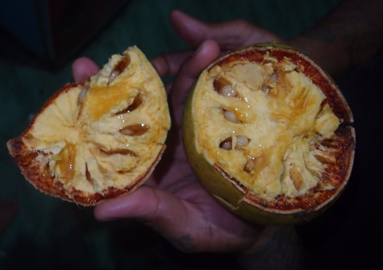 Сегодня познакомлю вас с названиями некоторых экзотических фруктов. Баиль или древесное яблоко Этот экзотический фрукт известен еще и под другими названиями: каменное яблоко (stone apple), деревянное яблоко, айва бенгальская, билва, бильва, мраморная яблоня, матум, мармелос, обезьяний фрукт... Очень широко распространён баиль в странах Юго-Восточной Азии. Этот фрукт произрастает на дереве и достигает около 20 см в диаметре. Плоды встречаются самые разные: от жёлтых и серо-зелёных (незрелых) до совсем коричневых. В одной из индийских легенд говорится, что дерево бильва выросло из капель пота, упавших на гору Мандару со лба богини Парвати. Дерево баиля в Индии считается неприкосновенным. Там запрещается срубать его, ломать ветки. Индусы верят, что на этих деревьях обитают духи. Плоды деревьев традиционно использовались для подношения богам в храмах и символизировали собой представителей индийского пантеона. Другим экзотическим названием, о котором вам расскажу будет Саподилла или