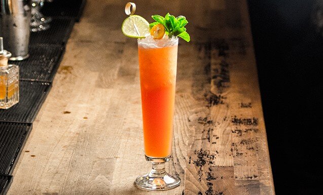 Время приготовления: 5мин. Сложность приготовления: легко Пищевая ценность: 202ккал. Ингредиенты. 25 мл темного рома (или смесь темного рома и золотистого Рома) 25 мл белого рома (или смесь белого рома и сверхпрочного Рома) 50 мл сока лайма (лимон) 150 мл ананасового сока лед 1 ч. л. гренадина Для украшения: долька апельсина мараскиновая вишня веточка мяты Налейте ром и фруктовые соки в шейкер для коктейлей, наполненный льдом, и сильно встряхните, пока снаружи шейкера не станет очень холодно. Процедите смесь в высокий стакан или стакан урагана, наполненный льдом, затем медленно влейте гренадин, чтобы окрасить напиток. Насадите дольку апельсина и вишни на коктейльную палочку. Украсьте напиток веточками мяты и нарезанными на фруктами. Приятного аппетита!