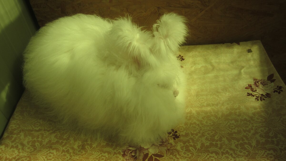 Немного об ангорских кроликах Глядя вот на это чудо, не сразу догадаешься, что это - кролик. Но кролик это особой породы, которая называется "Немецкая ангора". Это фото из нашего хозяйства - не так давно мы их держали, но теперь, в силу обстоятельств, пришлось сделать паузу в их разведении. Содержались они у нас в клетках, как и обычные кролики, так как они достаточно большие- взрослый кролик весит 4.5-5 кг. Как и другие кролики, они бывают разных окрасов - белые, черные, рыжие, "дикие" и другие. Во взрослом возрасте у них начинают появляться кисточки на ушах. Для чего же держат таких кроликов? Ну, конечно, для получения пуха. Их шерсть не имеет остевого волоса, она очень мягкая и длинная - до 12-ти см . Шерсть с них можно стричь машинкой, а можно выщипывать. Делать это нужно раз в 3 месяца, чтобы она не успела сваливаться. За год с одного кролика можно настричь примерно 1 кг шерсти. Но, благодаря тому, что она очень лёгкая, в 2 раза больше можно связать из неё изделий, чем из такого