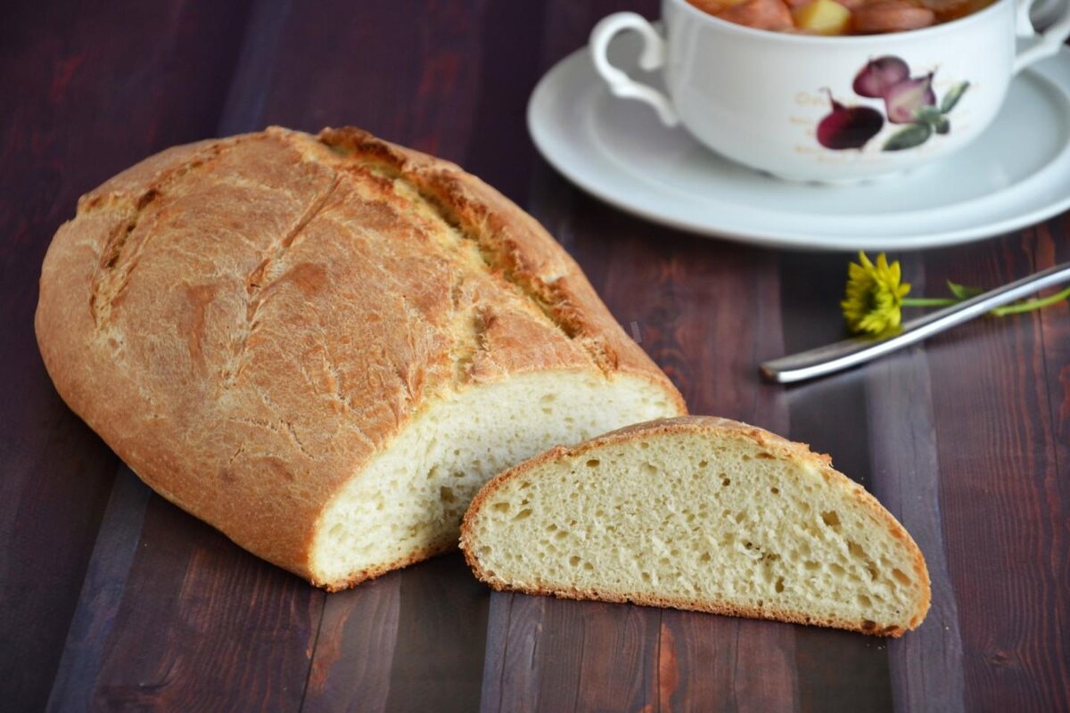 Люблю печь этот хлеб. Рецепт крайне простой. В рецептуре нет ни яиц, ни молока, ни масла. Но результат отличный! Мягкий, с хрустящей корочкой, по-домашнему вкусный постный хлеб… Что может быть лучше? Время приготовления 3 часа Калорийность 230 ккал/100 г Ингредиенты (8 порций) · сухие дрожжи – 1 ч. л; · мука (пшеничная) – 500 г; · сахар – 1 ч. л; · соль – 1 ст. л; · растительное масло – 1 ст. л; · теплая вода – 250 мл Замешиваем тесто Подготовим опару. В небольшую емкость наливаем 60 мл теплой воды (36-38 градусов). Всыпаем сахар, дрожжи. Перемешиваем. Покупая сухие дрожжи, почитайте инструкцию на пачке. Нам нужен вариант, когда дрожжи разводятся жидкостью. Если написано, смешать с мукой, не подойдет. В емкость к дрожжам всыпаем пару ложек просеянной муки. Перемешиваем до однородности, чтобы не было комочков. Отставляем опару в теплое место на 30 минут. За это время на поверхности появятся пузырьки и пенная шапочка. Вливаем оставшееся количество теплой воды. Солим. По частям добавл
