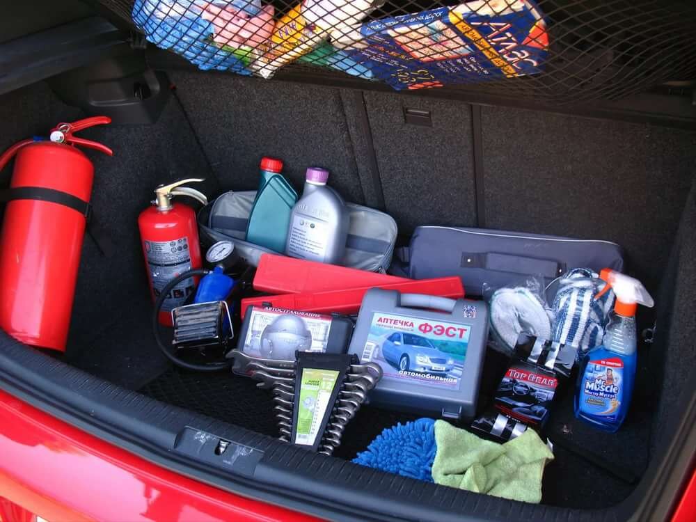 Всем здравствуйте, и так пожалуй начнём, говорить о том что следует с собой иметь в багажнике когда отправляешься в дальнию поездку. — Домкрат — он поможет приподнять машину, а это облегчит работу вам в замене колеса. Как же им пользоваться: нижнюю часть домкрата нужно поставить на землю, а верхнюю упереть в специальное для этого место. При помощи круговых движений ручки поднимается часть машины, т.е. вместо колеса 4-го автомобиль опирается на домкрат. — Комплект запасных лампочек ближнего и дальнего света, поворотов, габаритов и стоп-сигналов в машине иметь просто необходимо, даже в том случае если вы их самостоятельно менять не умеете. Если лампочка перегорает в светлое время суток это еще не беда, а вот если она перегорает ночью, то дальнейшее движение становится проблематичным. Допустим, перегорает лампочка в фаре, это естественно снижает видимость для водителя, так же если сгорели повороты днем их можно показать рукой, это не проблема, но вот ночью вашу руку никто не заметит. Поме