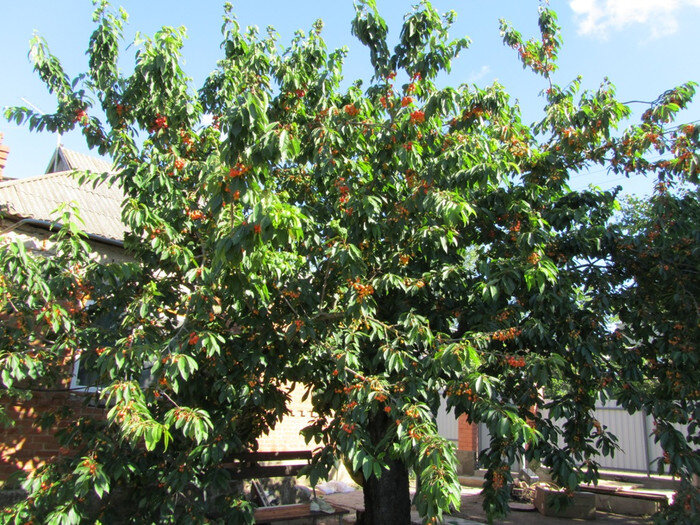Огромная черешня привлекла моё внимание к фото, когда листала сайт агентства недвижимости в поисках дома. Каждый год радовала обильным урожаем...Крупная, сладкая! Хватало нам, гостям и соседям). Однажды было так много, что даже самогон из черешни сделали))) В сентябре шквалистый ветер расщепил долгожительницу до земли, пришлось спилить((. Оказывается срок жизни черешни для нашего региона 25-30 лет, наше дерево чуть ли не вдвое старше. Под кроной черешни ни чего не росло, да и садить что либо не было смысла, всё равно б всё вытоптали во время созревания плодов. Не запланированная работа, без четкого плана, скорее всего придётся переделывать .. Ну а пока вот что получилось: Ещё больше про сад, стройку и многое другое читаем ЗДЕСЬ И подписаться не забудьте!