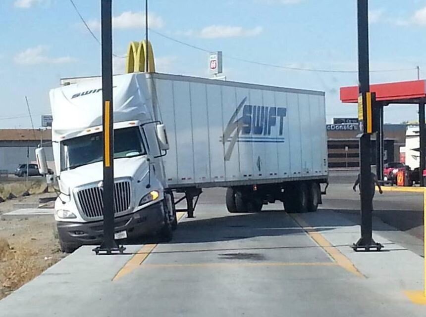 Если вы являетесь постоянным читателем моего канала, то уже наслышаны про транспортную компанию Swift, водители которой постоянно попадают в неприятности на ровном месте. То грузовик сфотографируют на встречной полосе, то он застрянет где-то в лесу, а этот "талантище" не смог нормально заехать на весы. Это просто удивительно, ведь проезд тут ровный и широкий. Как он это сделал?