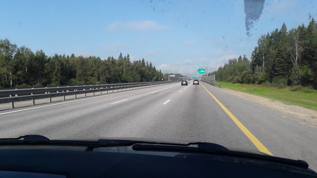 Новая Рига в самом своем начале, если мы не берем в расчет участок от Мкад, а не от брусчатки у Московского зоопарка, вот уже несколько лет как избавилась от оков ремонта и стала многополосной, частично то помогло решить проблем пробок, но не в час пик. Едем в непопулярное время - шоссе свободно, не это именно автомагистраль с разрешенной скоростью в 110 км/ч, асфальт прекрасен, машин не много, смотрю кино про то как кто-то куда-то едет, про природу и погоду, которая тоже прекрасна. Выбрав путешествие осенью, особенно на север, можно здорово прогадать и поездка будет испорчена. Сегодня все хорошо.
