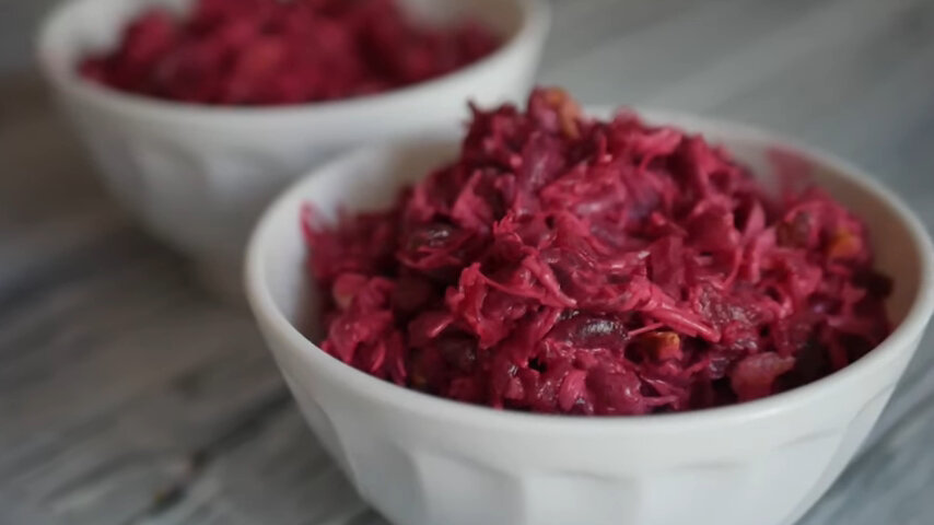 Всем огромный привет! Сегодня будем готовить с вами салат со свеклой, очень сочный, сытный, немного остренький и готовится на раз-два. Ингредиенты: Итак, берем одну небольшую свеклу и натираем её на крупной терке. Берем грецкие орехи, слегка их подсушиваем на сковородке, чтобы они стали более ароматными и хрустящими. Достаточно крупно нарезаем их на мелкой терке и натираем твердый сыр. В свёклу натираем несколько зубчиков чеснока, перемешиваем, добавляем твердый сыр, высыпаем изюм и добавляем орешки. Солим по вкусу и заправляем сметаной, также можно использовать и майонез. Вот и всё! Салат со свёклой готов, орешки в салат лучше добавлять уже в самом конце, чтобы они оставались хрустящими, а так салат мне очень понравился, к какому-нибудь гарниру то что надо. В принципе он настолько сытный, что можно заменить даже такой легкий ужин. Попробуйте обязательно, благодарю Вас за внимание. Подписывайтесь на канал, если Вам нравится материал.