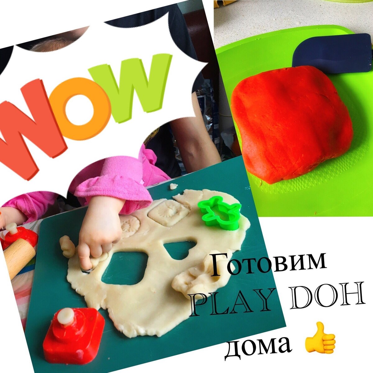 Лучший рецепт 👍 для приготовления мягкого теста play doh, самое главное состав-никакой химии! Ведь все малыши тянут все в рот, им обязательно надо все попробовать) Очень приятная текстура, не прилипает к рукам, а масло увлажняет руки. 250 гр муки 3 ст.л соли 2 ст.л лимонной кислоты 1 стакан воды 2-3 ст.л растительного масла Разноцветные сухие красители Смешать сухие игридиенты, постепенно ввести (помешивая) стакан воды и масло. Вылить в кастрюлю часть этого теста и добавить краситель. Помешивая 🥄3-5 минут на среднем огне, выпариваем воду, должна получиться нежная масса. После каждого красителях вымыть посуду, если будете делать много цветов. Я делала натуральный цвет, получилось около 200 гр, хватит на долго, хранить лучше в холодильнике. Далее раскатываем тесто скалкой, запасаемся разными формочками и наслаждаемся игрой вместе с малышом)