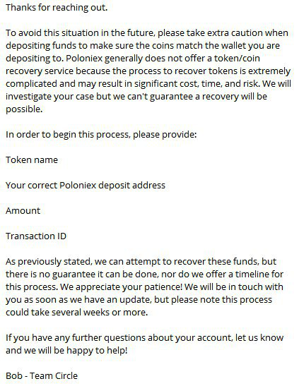 Господа, у кого счета на бирже Poloniex! Если вы получили от них требование пройти верификацию, то делайте это сразу же не откладывая!!! Потому что существует огромная вероятность лишиться всех своих средств. Знаю уже несколько примеров. Под предлогом разных сложностей биржа блокирует счета, после чего практически нереально получить назад свои средства. Я бы категорически(!!!) рекомендовал вывести средства с биржи Poloniex всем у кого на данный момент счета не верифицированы. Даже если вы собираетесь пройти верификацию, то сначала лучше вывести средства, а после верификации завести заново. Но я на эту биржу ни ногой! У человека потребовали пройти верификацию, а после подачи всех необходимых для верификации документов прилетело такое "письмо счастья".ммУ человека потребовали пройти верификацию, а после подачи всех необходимых для верификации документов прилетело такое "письмо счастья". Доброе утро, господа! Сегодня Васю посетила очередная умная мысль... Каждое действие любого челове