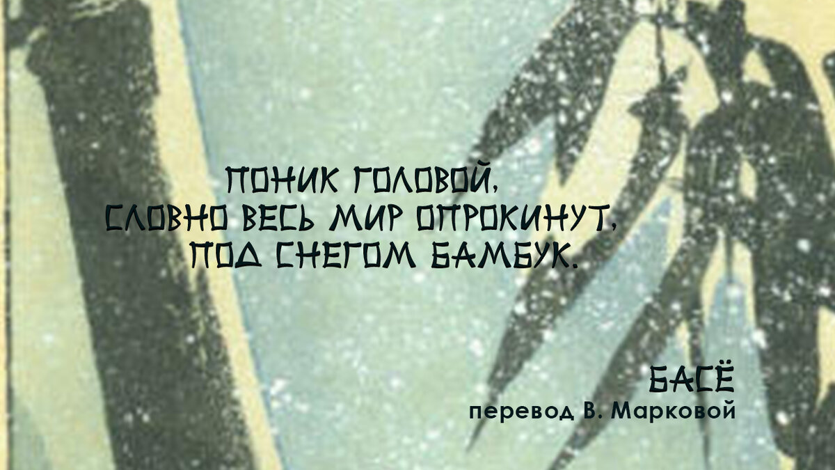 Дорогие друзья! Вот и пришла в наши края зима - первый снег, первые метели, первое ощущение долгой зимы. Сразу вспомнилось стихотворение Дзёсо Найто, впервые прочитанное в повести Стругацких "Попытка к бегству": *** И поля и горы - Снег тихонько все украл... Сразу стало пусто. Немного грустно, особенно если вспомнить повесть Братьев Стругацких, тем кто не читал - рекомендую: http://strugacki.ru/book_17.html Захотелось сделать подборку японских стихотворений о зиме и иллюстрировать гравюрами Укиё-Э. Надеемся, что удалось передать тонкие ощущения, которые дошли до нас через века, благодаря великим поэтам и художникам. Artist:Ito Sozan Title:Warbler in winter bamboo Басё (Мацуо Басё) 1644-1694 — японский поэт, теоретик стиха, сыгравший большую роль в становлении поэтического жанра хайку. Басё после себя оставил 7 антологий, в создании которых принимали участие и его ученики: «Зимние дни» (1684), «Весенние дни» (1686), «Заглохшее поле» (1689), «Тыква-горлянка» (1690), «Соломенный пл