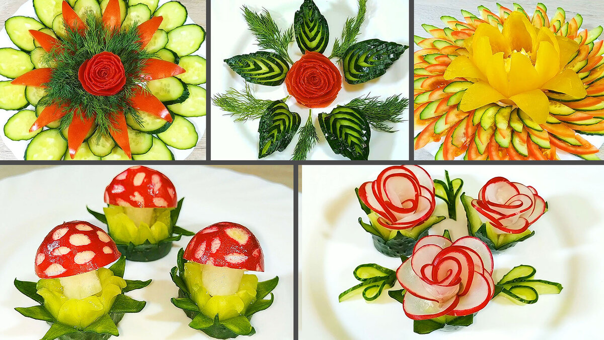 5 способов украшения овощами! Как красиво нарезать овощи на Праздничный стол