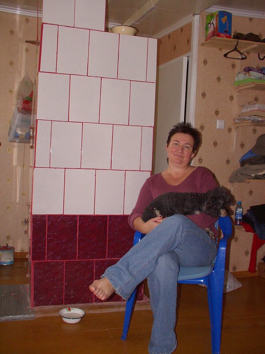 Наш новый домик не очень большой, площадь первого этажа 35 кв.м., площадь второго этажа 24 кв.м. Варианты отопления долго не обсуждали. Газа нет. Электро отопление отпало по причине маленькой нормы выделенной мощности, сейчас точно не помню, но по моему не более 5-7 кВт. А в нашей деревне добиться увеличения нормы было не реально. Подстанция была слабой и еле еле справлялась с существующими нагрузками. Оставалась только печь, но нужно было выбрать какая. Кирпичная печка отпала по трем причинам. Первая - очень большой вес. Нужно было бы делать фундамент, строить трубу, соответственно придется разобрать часть пола и потолка. Вторая - большой размер, а для нашего маленького домика размер имеет значение. Третья - высокая цена. На фото печка в маленьком доме, ее мой умелец-муж сделал своими руками.