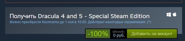 Все кто ещё не спит и не бухает, успейте забрать парочку неплохих игр в стиме Dracula 4 и Dracula 5. А если уж упустите, то не переживайте. Подпишитесь на нас в дзене, в контакте и добавьте сайт в закладки чтобы в следующий раз не упустить халявку. Почему-то написано что закончится в 16:00 скорее всего по времени пиндостана.