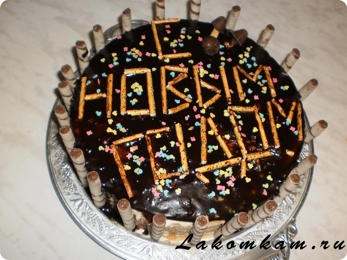 Остывшие коржи складываем на поднос или тарелку стопкой, промазывая каждый получившимся кремом.