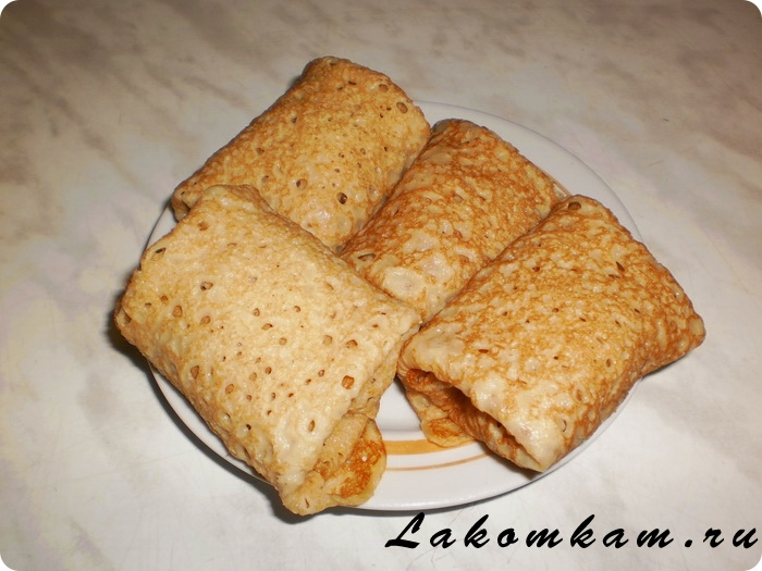 Приготовление блинов фаршированных консервированной рыбой с грибами и луком.