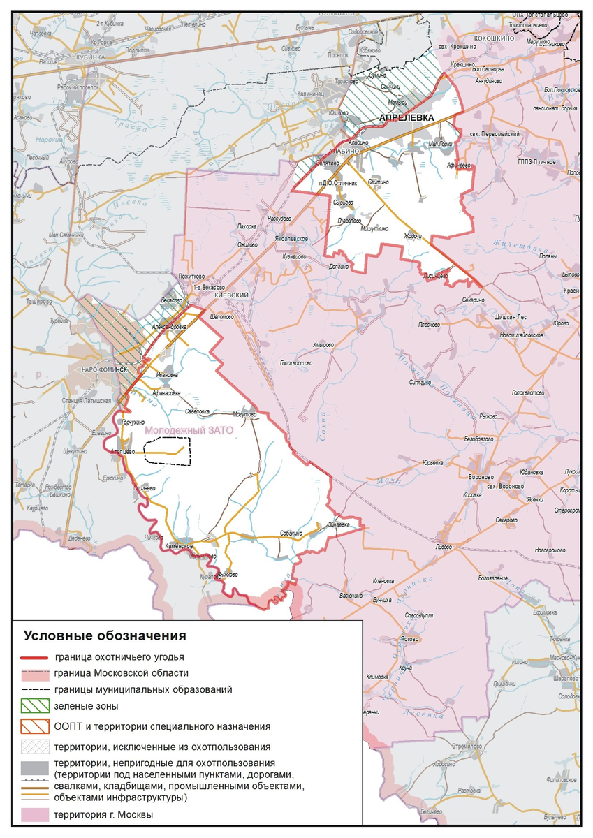 Общедоступные охотничьи угодья Наро-Фоминского района "Апрелевский" участок Площадь: 10 182 га
