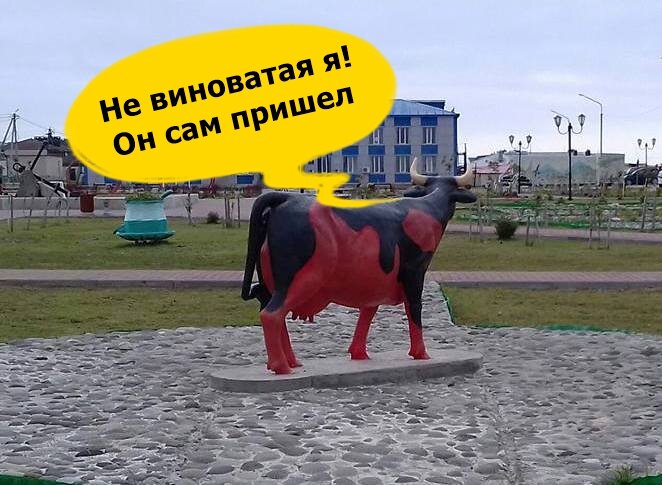 Опять стране грозит опасность! "Власти Южно-Курильска убрали с городской площади перед администрацией изнасилованную бетонную корову. " А на место коровы была поставлена бабочка. Что несомненно радует. Оперативная работа властей показывает как они способны работать в экстренных ситуациях. Молодцы,незамедлительно убрали оскверненную корову, на которую горожане не могли больше смотреть без слез. Фото с места пришествия не прошли цензуру, но вид у коровы был очень помятый и не приглядный. Зато поставили новую красавицу. Бабочку. С надеждой в сердце что бык не будет свершать рецидив. Тем более за это можно будет ему впаять уже не только изнасилование, а еще и геноцид. Или как это все там в биологии называется? Сторожил города поделились с нашей службой новостей данными. По информации местных жителей там постоянно происходят подобные инциденты. Там все памятники чпокоют и оскверняют. На самом же деле быку было очень больно любить бетонную корову. Наивный бык стал жертвой трагически